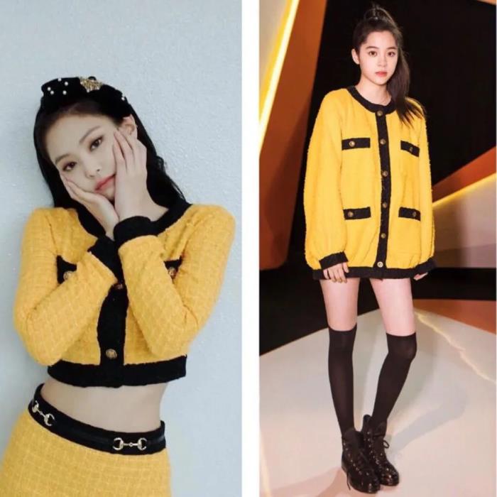 但其实Gucci并没有出过这样的短上装,是YG的造型师根据Jennie的身材比例改短的。