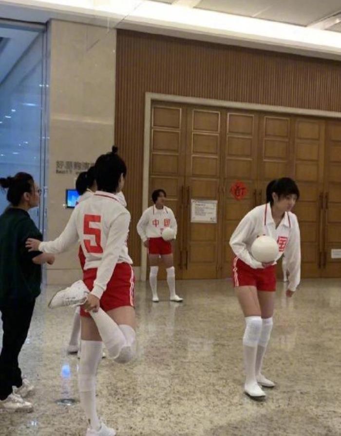 今年已经35岁的李宇春和一群年轻的女排姑娘们站在一起也没有什么年龄差,首次演戏的春春可是非常敬业的,认真在场边做热身,女排的运动装可不是我们穿的那种宽松的款式,为了方便运动,裤子和上衣都是紧身的,这种弹力很强十分贴身的运动装相当考验身材,显然李宇春这么多年保持得很不错。