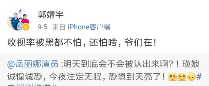 岳丽娜饰演的瑛娘有人说是当年的河姑瑛子,隆家上上下下聚集一起开始指认,岳丽娜微博发文担心会不会被认出。看我们的郭导直接霸气回复:收视率被黑都不怕,还拍啥,爷们在!有这样山一样的男人在背后,幸福!