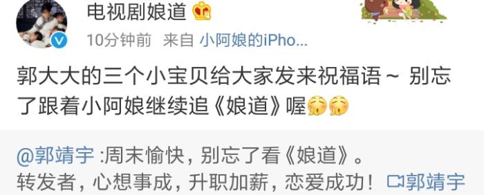 郭靖宇直言自己最美的青春,一半献给了电视剧事业,一半陪伴娜姐的岁月,都值了。看看这两口子的微博互动,真是心有灵犀,时时不忘撒狗粮啊!感动!