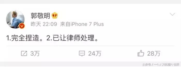 而郭敬明迅速做出了回应:1.完全捏造;2.已让律师处理。