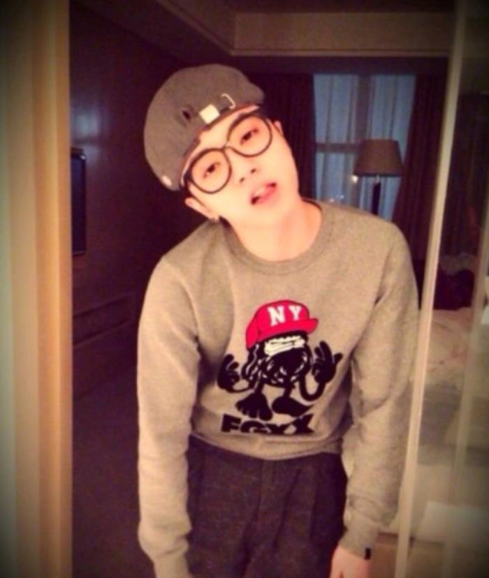 2018年换上了帽檐内扣式的毛呢棒球帽,也是紧跟着时尚的潮流,金边的黑墨镜搭配小圆形的耳环,这身造型真是太酷了,与之前的呆萌可爱完全形成了鲜明的对比,一条浅蓝色的牛仔裤更显干净清新。
