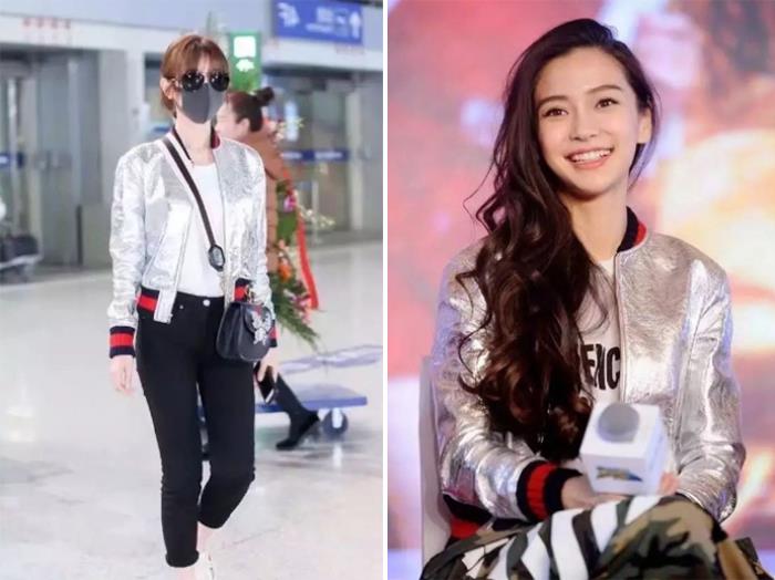 毛晓彤在机场的这件银色镜面夹克还果断撞了Angelababy,同样是用白t做了内搭,毛晓彤墨镜口罩齐上阵,多了分出街的酷感,腰间刺绣包包无疑点亮了全身,这么前卫的造型,还是很少见她穿呢~