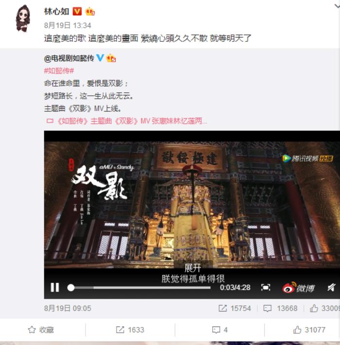 再看看林心如微博的内容,相当丰富,有不少自己参加的活动照片曝光,也有自己和丈夫霍建华参演作品的宣传。