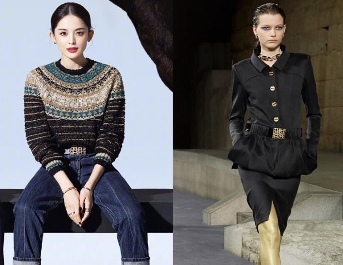 而对于香奈儿这种大牌,很多女明星都身穿过他们的服饰,并且各自呈现出的效果也不一样。而古力娜扎的这件白色上衣更是经典中的经典,她上身内搭白色打底衫,外面这件白色上衣针织的设计版型挺括立体,金色的翻领发配金属纽扣,整体搭配优雅中不失干练霸气。