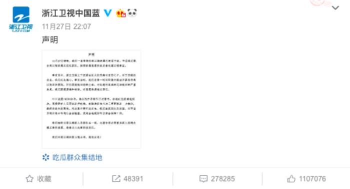 如今相似的意外发生了,到目前为止浙江卫视的公开表态只有两封声明,事件发生时的详细情况仍未公布,更没有公众希望的“道歉”二字。