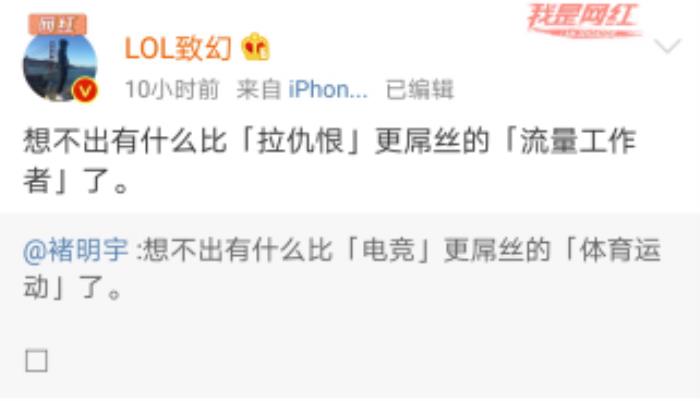 知名解说致,也表示:想不出有什么比[拉仇恨]更屌丝的[流量工作者]了。