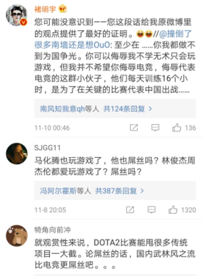 但是,近日有著名微博大V——褚明宇公开嘲讽:想不出有什么比[电竞]更屌丝的[体育运动]了。一时间在网络上引起轩然大波。众网友纷纷表示支持电竞。