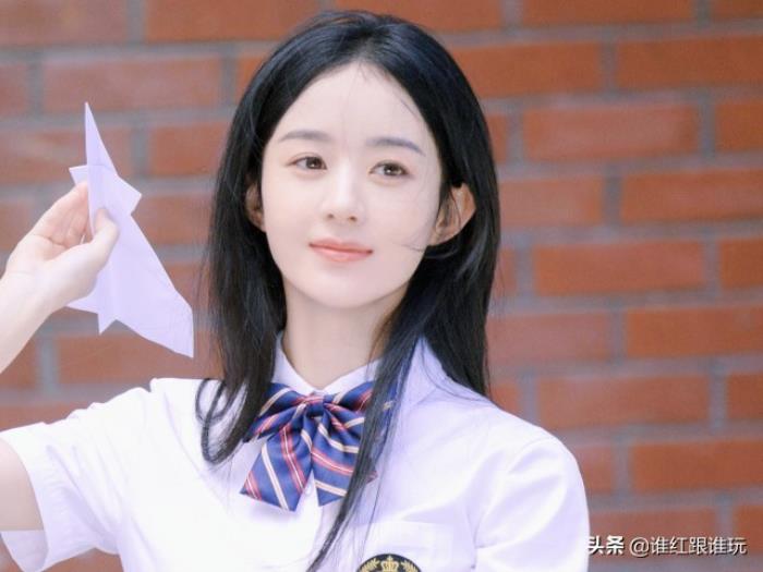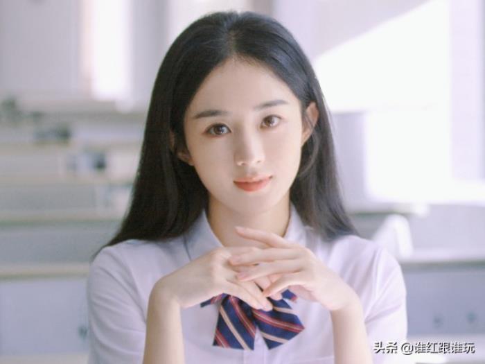 如图所示,这是赵丽颖近期在张杰的新歌MV里,饰演的高中生女主角。