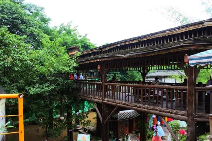 古朴的木质廊桥,很古香古色,这里除了西式的建筑,也有中式的文化。