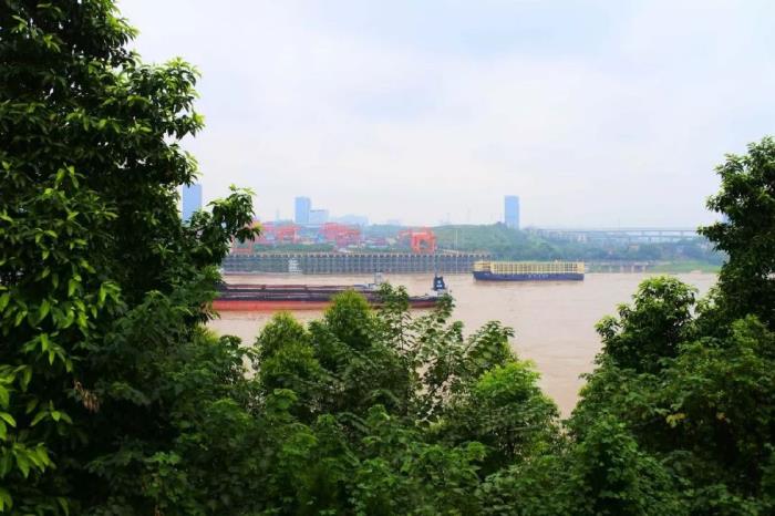 在洋人街,也可以欣赏到美丽的江景,对岸是寸滩集装箱码头,十分的壮观。
