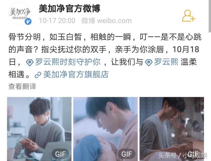 自从罗云熙先后宣布与两个护肤品牌合作后,品牌方陆续放出不少合作物料。