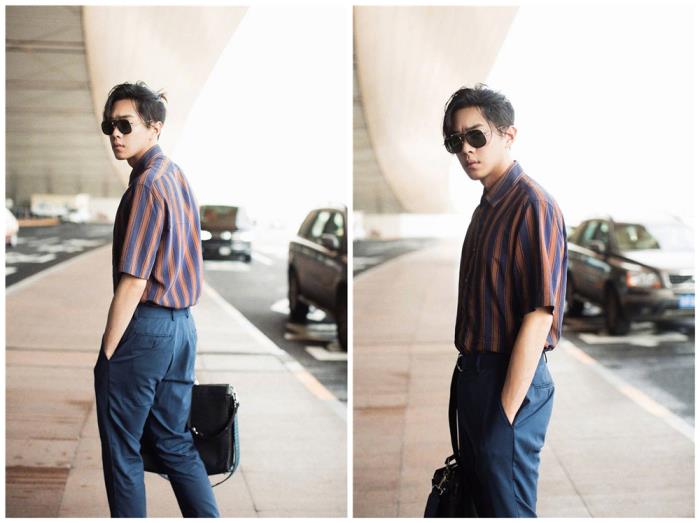 这次机场街拍,张若昀身穿休闲条纹衬衣搭配深蓝色休闲裤,衬衣纽扣扣得一丝不苟,倒是非常符合张若昀之前在剧中的形象。腰带不是那种皮质腰带,更加休闲一点。手提休闲包,再搭一双纯色休闲鞋,造型也是十分潇洒。