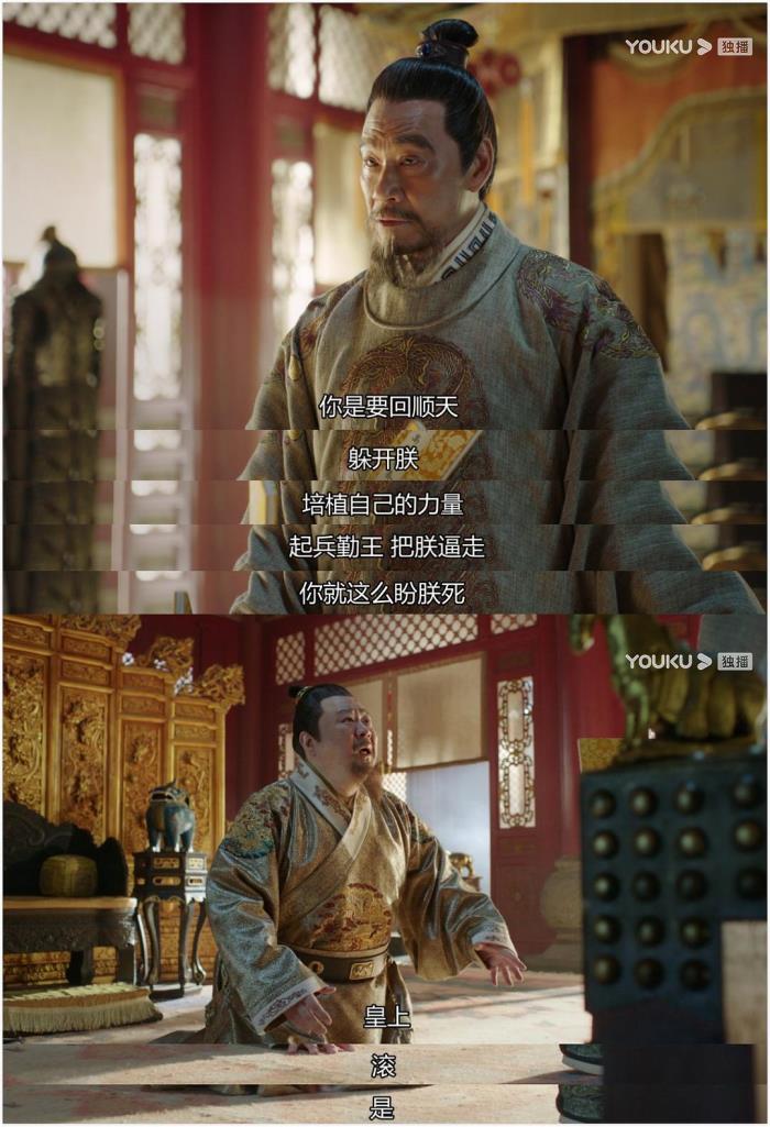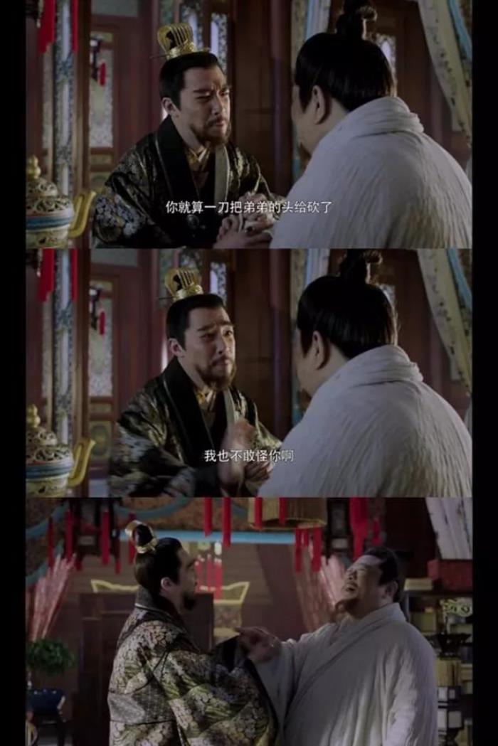 俞灏明饰演的二皇子朱高煦和梁冠华演的朱高炽被父亲朱棣责罚之后,假惺惺的温情 “和好”,却又在话语中相互嘲讽揶揄,一句“你就算把弟弟的头砍了,我也不敢怪你啊”,兄弟二人默契的齐声大笑,是家庭生活之中的兄弟较劲,也是皇权之下的如临深渊,一个简单的场景就,历史被勾勒得活灵活现。