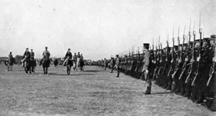 小站练兵成果展现——列队接受朝廷大员视察和检阅。