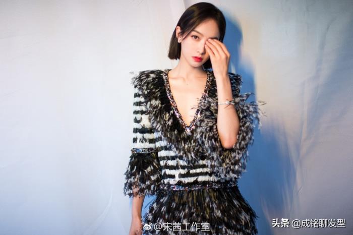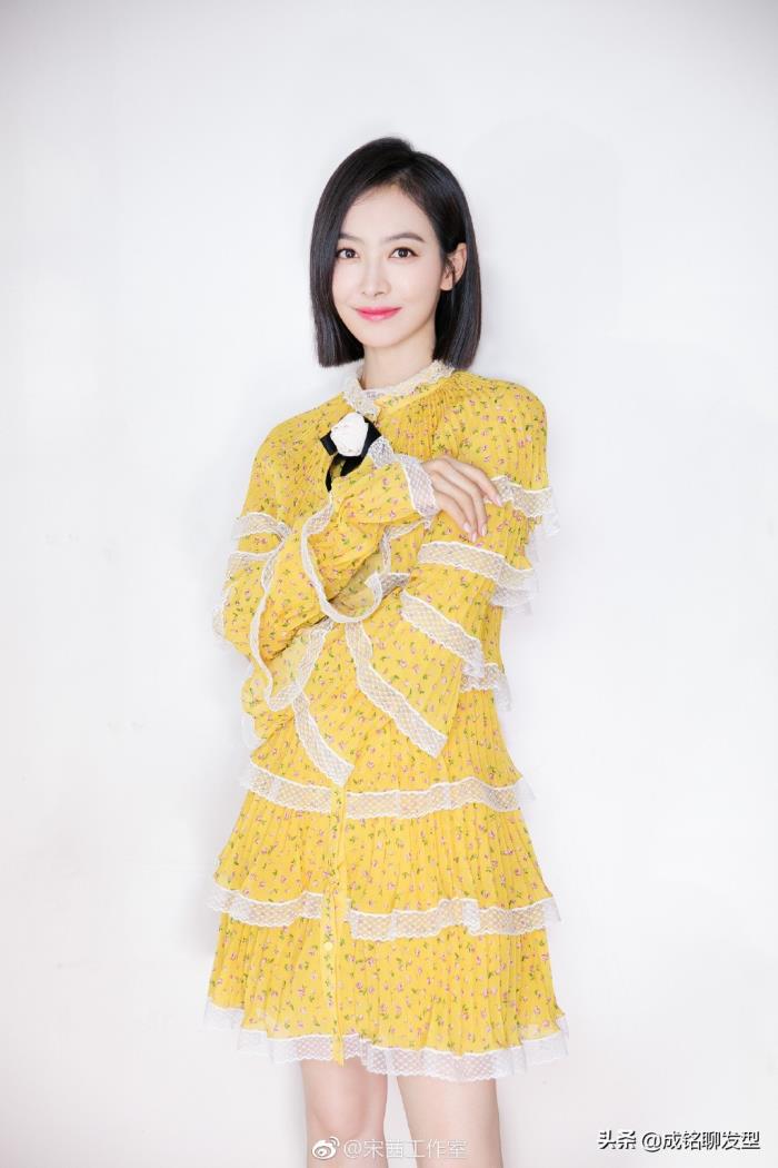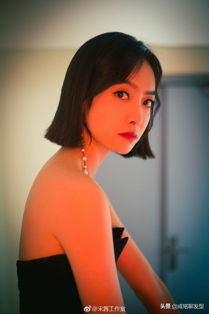 ▲ 宋茜的颜值以及气质,把这一款路人眼中的大妈头,演绎的时尚感十足,这和宋茜优雅的气质以时尚的穿搭风格有着很大的关系。这种发型如果穿着普通,素面朝天,那就是一款在普通不过的齐耳短发,这有说明我们前面聊到的话题,漂亮的人都很努力的让自己更漂亮,平庸的人不会把精力用在打扮上,这就是区别