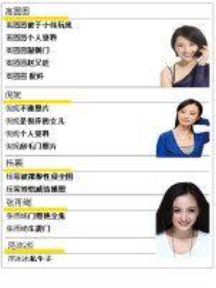这是百度搜索自动带出来的相关搜索,高圆圆被于小伟玩惨、杨幂性侵全图、张雨绮艳照这些排在第一位的搜索内容可以说是网友自己搜索的,这类搜索艺人是左右不了的,这些搜索内容可以证明大家对下半身确实很关心。可能有人会说,这也许有幕后黑手在故意推这些搜索链接黑艺人。