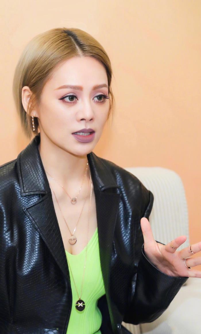 其实想要将绿色穿得好看,色彩的搭配很重要,对于饱和度比较高的绿色来说,用黑色来搭配是绝对不会出错的。乘风破浪的姐姐宁静的荧光绿V领打底衫亮眼又富有女人味,外搭黑色皮衣,不同的光泽感搭配让宁静看起来超酷超有范儿!