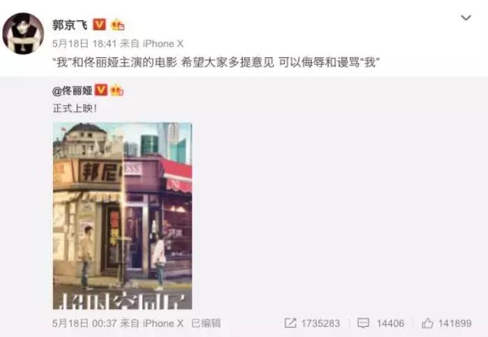 雷佳音新片上映,郭京飞只给佟丽娅声援,还号召大家开骂,明显把自己和雷佳音当成一人嘛。这感情好得不能再好了喂~
