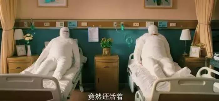 是不是觉得很神奇?很惊讶?感觉两人功夫犹如“陆超般真好”。可是,跳完直升机,镜头一转,两个重量级特工,直接全身绑绷带躺医院,来了个僵尸躺。