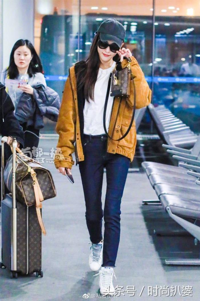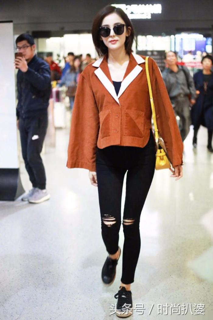 比如奚梦瑶,褐色的短风衣夹克,温暖,又酷又年轻,内搭最基础的黑白就能轻松凹出时髦感。