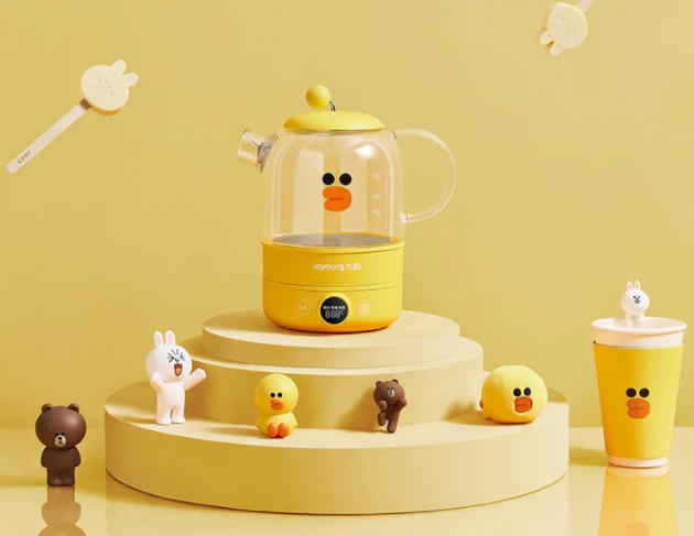 款由九阳 LINE FRIENDS联名的养生壶,莎莉鸡、布朗熊也太可爱了吧!呆萌的外表所征服你女朋友的心,瞬间乳化了她的少女心。
