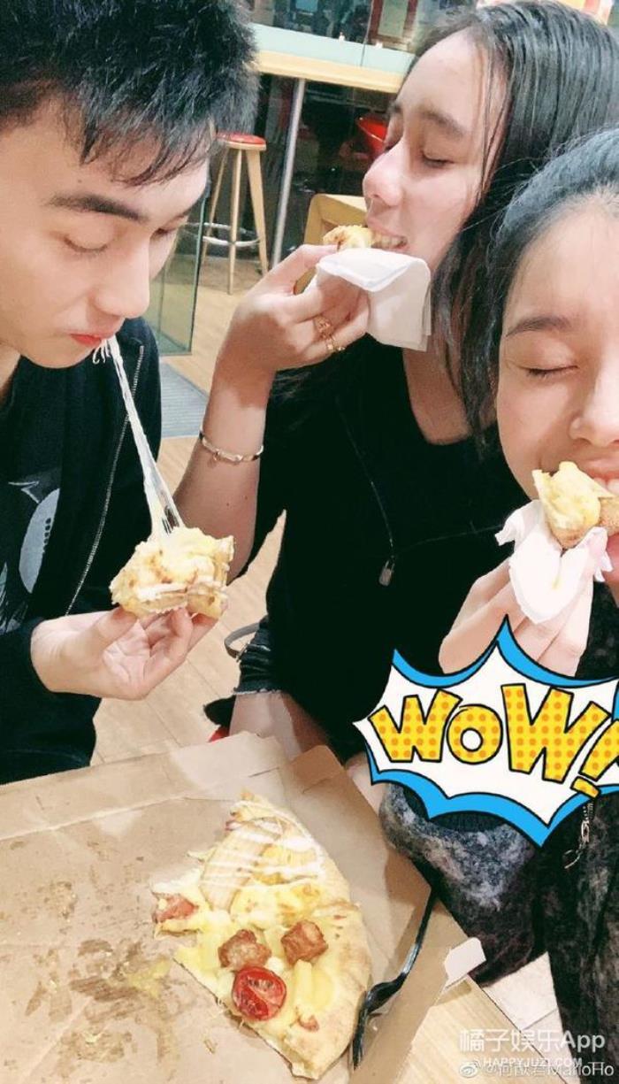 ▼何猷君通过微博晒出未婚妻奚梦瑶和妹妹何超欣享受披萨的照片,幸福地表示:“肥而不宅的家庭日。”这就开始秀了哈?