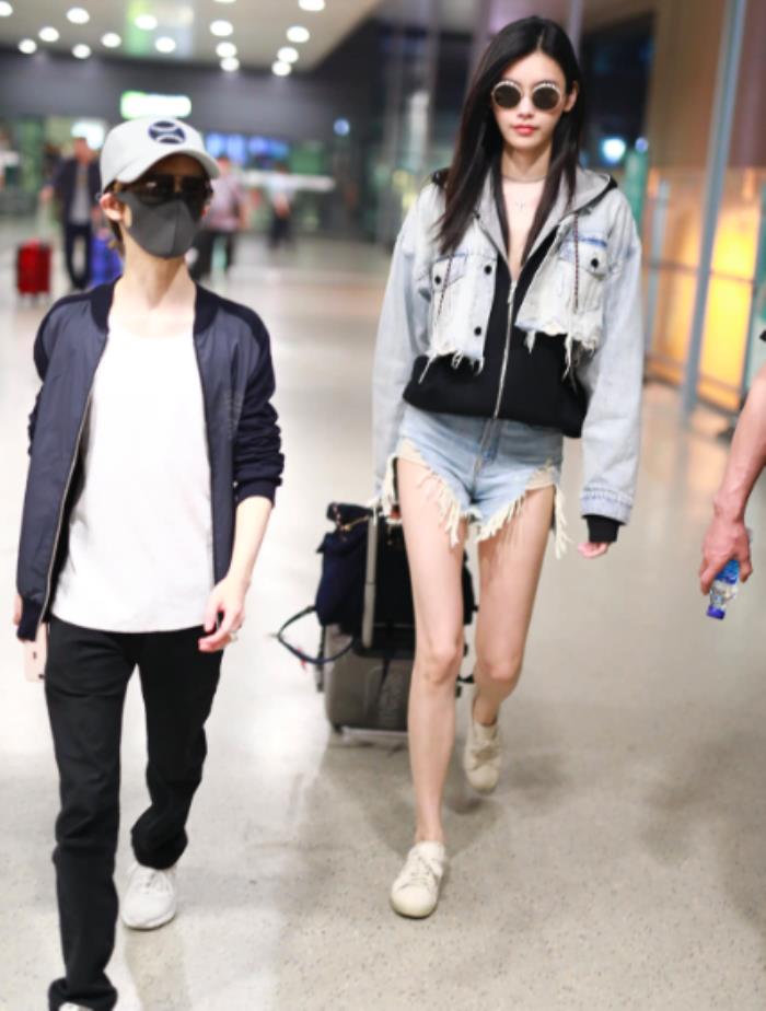不过,郭敬明虽然身高上有劣势,但气场非常强大,黑超遮面带着口罩走在最前面,而奚梦瑶在后面跟着独自拉着行李箱,好像郭敬明的助理一般。