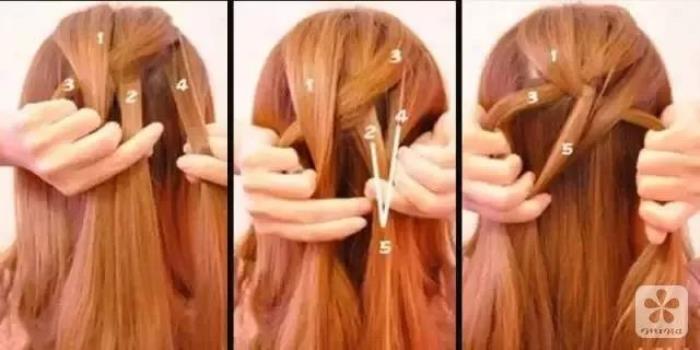 step2:然后从右边旁边抓起一股头发,融入在一起形成新的一股头发,将其压在中间股上面即可;