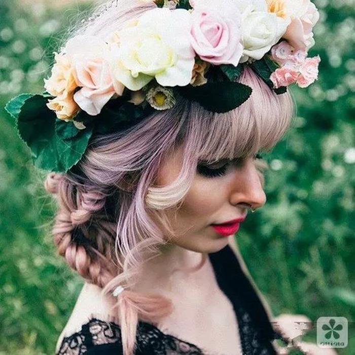 利落的复古虾尾辫上戴一圈似锦繁花,这花仙子一样的美貌你也可以拥有~