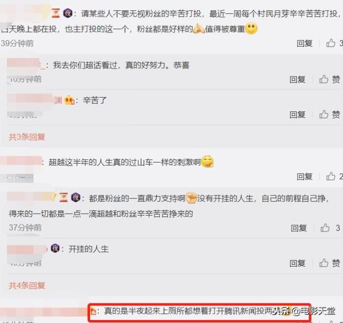 杨超越能战胜这四位拿到第一的好成绩,粉丝们真的太给力了吧。其中有位粉丝表示:半夜起来都要打开投票页面投两票,凝聚力也太强了吧。
