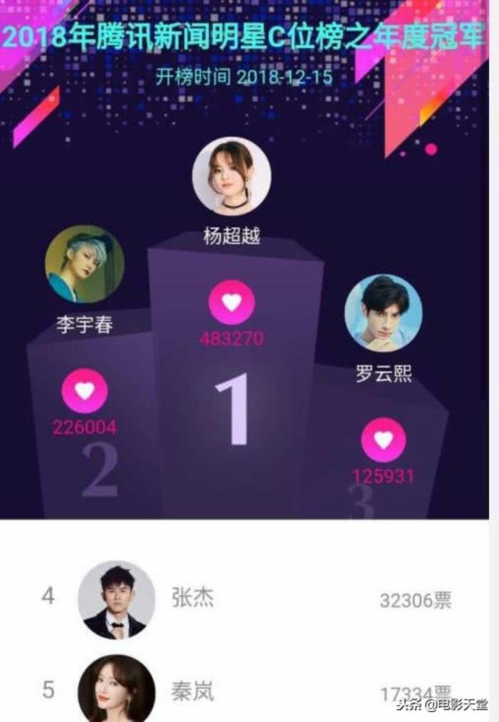 今天看到了一组这样的投票,杨超越稳占C位,夺得第一,第二是李宇春,第三是罗云熙,第四是张杰,第五是秦岚。对于这个结果,你可还意外么?