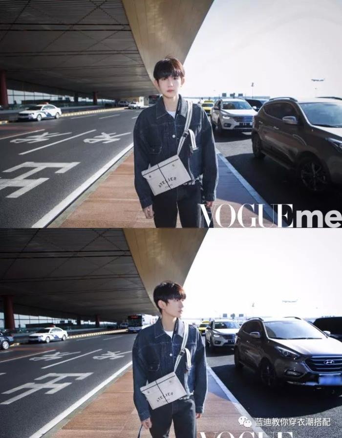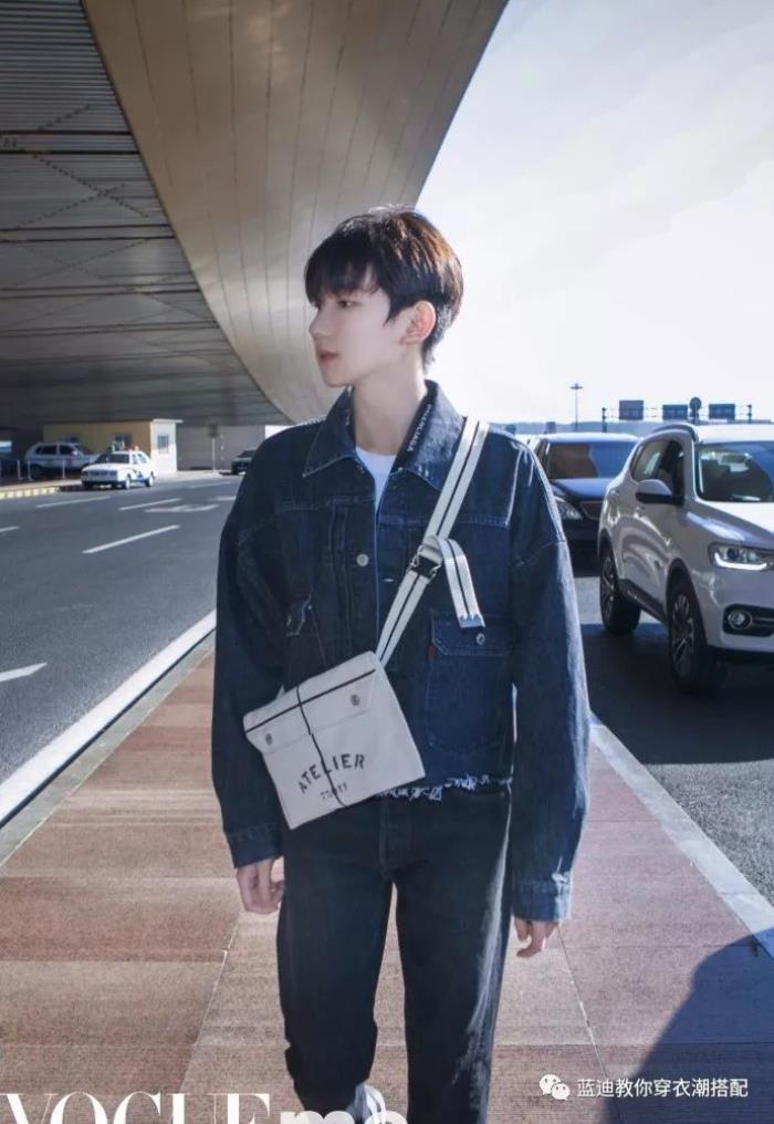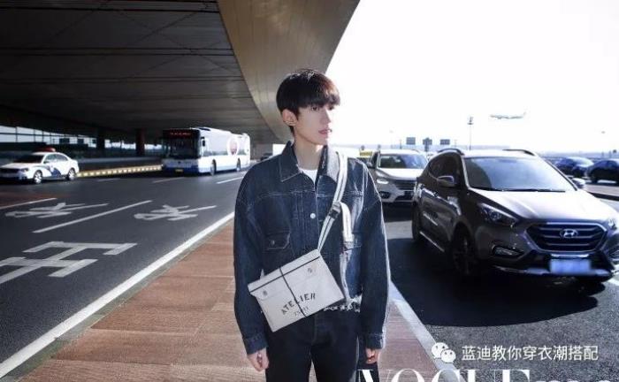 王源现身机场,深色的牛仔搭配调皮的白布包,奶酷味十足,帅气的少年为你点赞