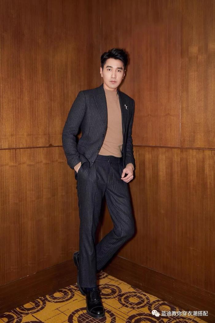近日,赵又廷出席新电影发布会,活动上赵又廷或身穿cerruti1881条纹西服套装,内搭同品牌驼色针织衫,搭配同品牌黑色皮鞋,成熟儒雅;或身穿Marni藏蓝色西服套装,内搭Burberry宝石蓝针织衫,经典中带点趣味,潇洒率性。