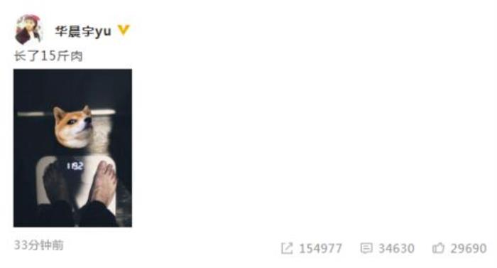 12月10日,在微博消失一个多月的华晨宇终于发文,表示自己长胖了15斤,而此前,他曾发文表示要开始长肉了。