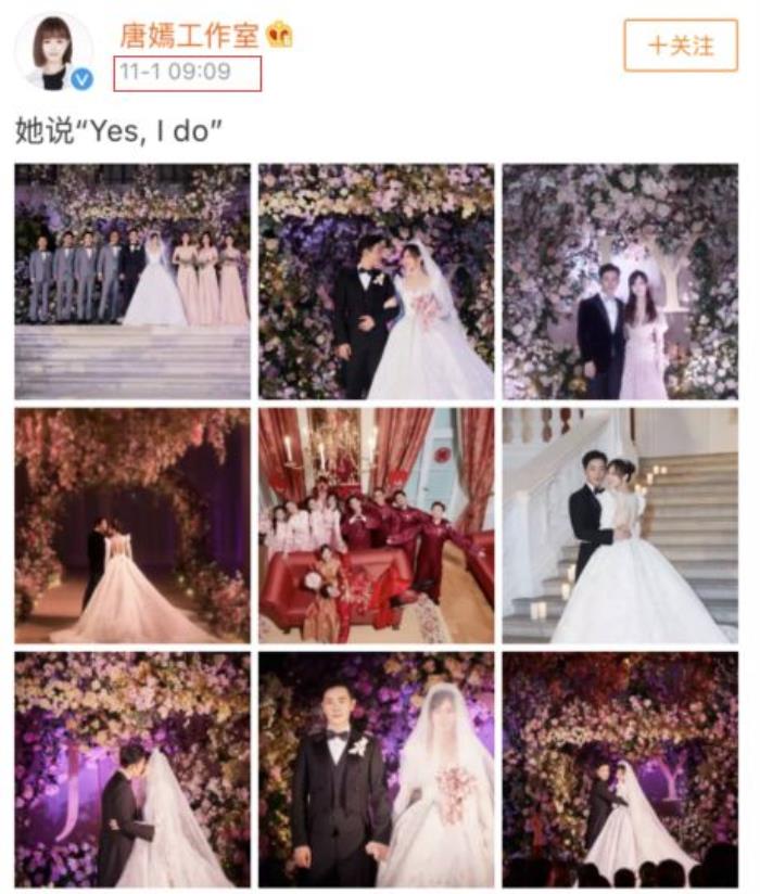 包括早于婚礼正日的欢迎晚宴都没有一张图片流出,直到10月28日当天,唐嫣罗晋才正式在社交平台公布婚讯。至此正式进入婚礼的第二个阶段,引爆流量。