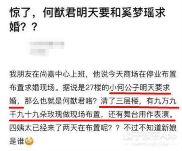 今天一大早就看到了赌王儿子何猷君要求婚奚梦瑶的爆料。