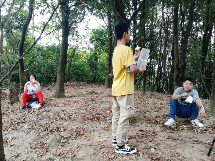 在导航和轨迹的协助下,我们选择了往林场北面行进。不太肯定但我们有信心。在信号塔和电网的临时山路和火界线的接驳中,我们行走在陡峭的山崖边,幸好增城一个多月没下雨,山中干燥,要不然下撤危险系数会直线上升。