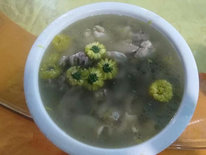 或许是我们真的辛苦了,或许是菊花谷的菜式真美味,反正我们几个人吃了几大碗饭,几大碗菜吃了个底朝天。菊花茶、菊花鸡、菊花蛋、菊花酒、菊花汤等等,我们意犹未尽。赏景品美味,世间最幸福的事情莫过于此。