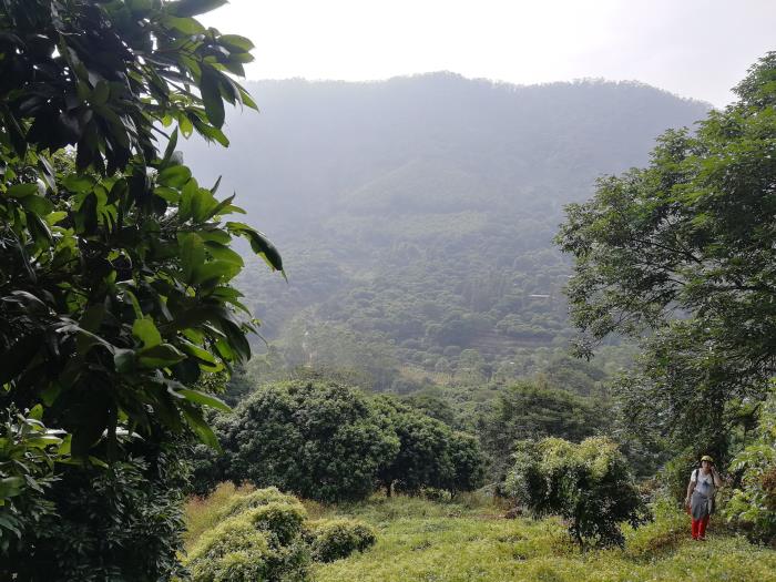 山楼林立,各种花卉盛开,引来无数蜂蝶宠幸。砂糖橘的农友正在采摘,蜜柿在树枝中摇晃,荔枝树下的土鸡在嬉笑逗乐。我们继续行走在大路上,继续追寻我们的大山。