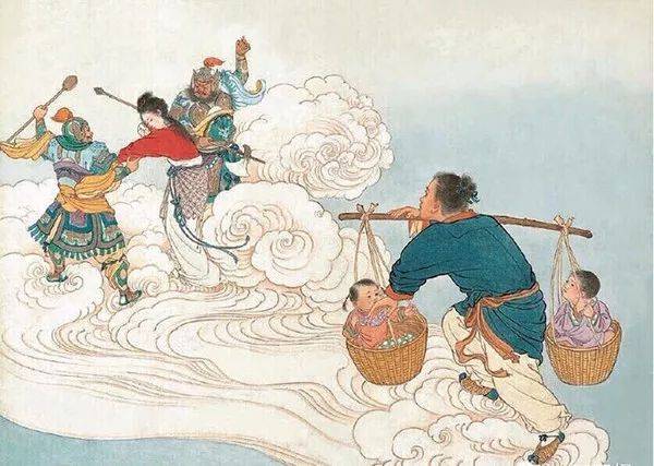 眼看就要追上,王母娘娘心中一急,拔下头上的金簪向银河一划,昔日清浅的银河一霎间变得浊浪滔天,牛郎再也过不去了。