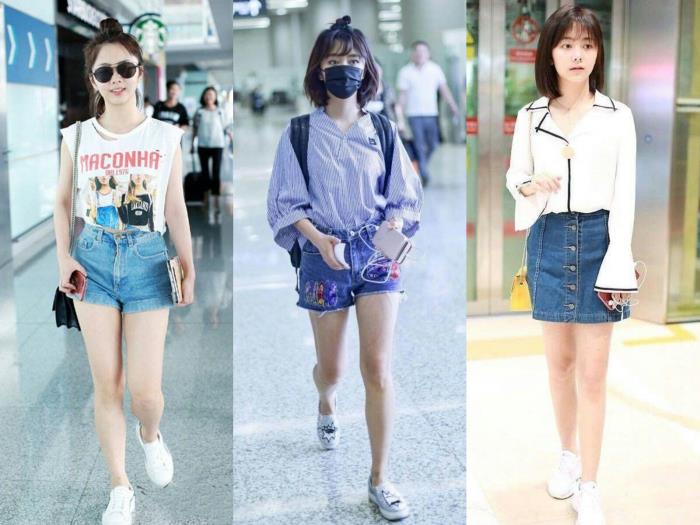 平时的机场街拍也都是这种甜美减龄风的搭配,其实感觉她真的非常适合这种甜美可爱系的风格。