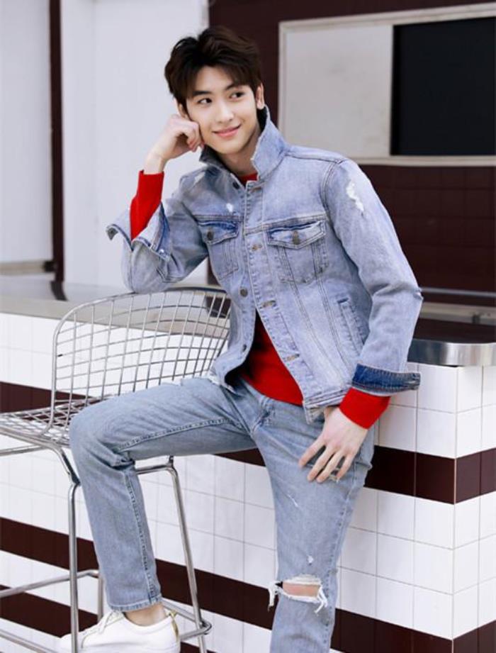 黄俊捷因为出演了几部青春剧,所以火了,其中代表的是《青春24秒》,他长得也非常青春,你看,穿着牛仔套装,内搭红色的针织衫,清新的同时还很时髦啊。