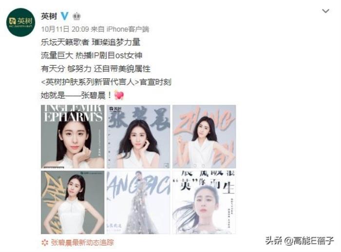 近日,英树官方宣布张碧晨成为英树品牌的全新代言人。