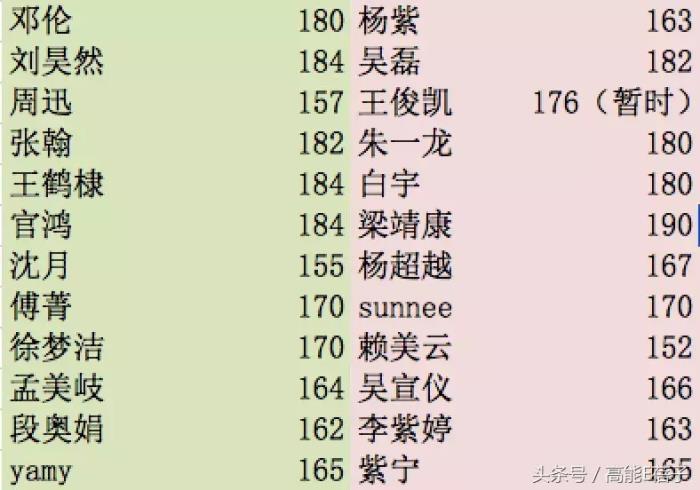 做了上一期的身高表格,帮大家快速回顾一下上期我们测量出来的明星们的身高~