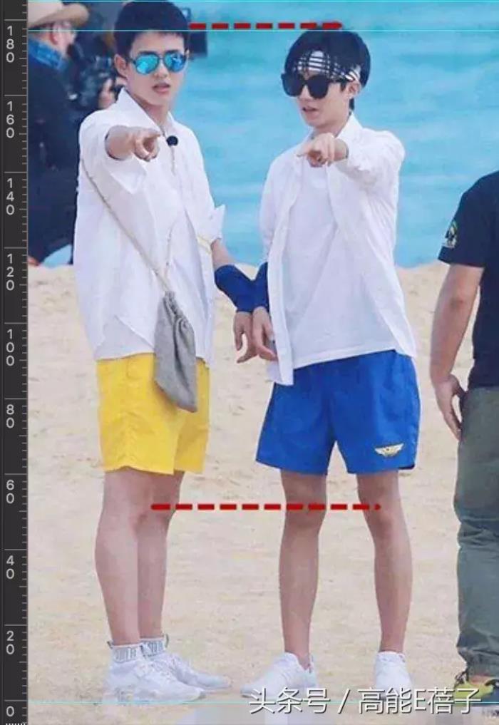 昊然弟弟净身高就有184cm,如今穿上了一双鞋底不算薄的鞋应该有了186cm,迅哥的高跟鞋挺矮的,只增高了5cm,最后可得迅哥净身高为157cm。