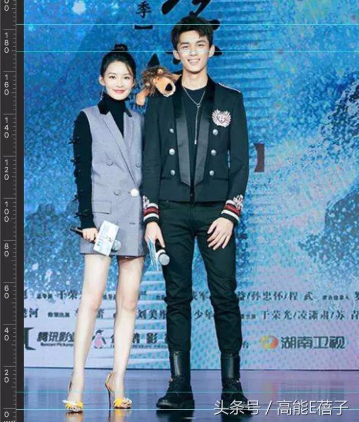 杨紫和邓伦早年还合作过《花非花雾非雾》,在此图中,杨紫的高跟鞋增高了6cm,此时她高168cm,但是因为她的姿势问题,我再给她加上一点身高,最后她的净身高为163cm。