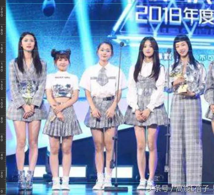 已知杨超越167cm,此图中她穿着平底鞋,段奥娟和赖美云同时穿着平底鞋,可得段奥娟身高为162cm,赖美云身高152cm。