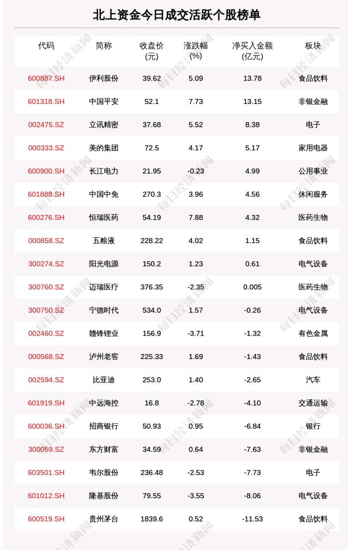 2丨整点投资丨贵州茅台遭北向资金净卖出11.53亿元