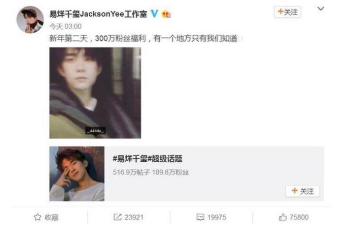 关注易烊千玺的千纸鹤们一定不会错过这条微博,在2018年新年的第二天,易烊千玺工作室发微博称:新年第二天,300万粉丝福利,有一个只有我们知道的地方。看到这条微博的千纸鹤们,都在纷纷猜测那个神秘的地方,你有猜到吗?